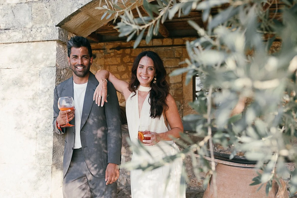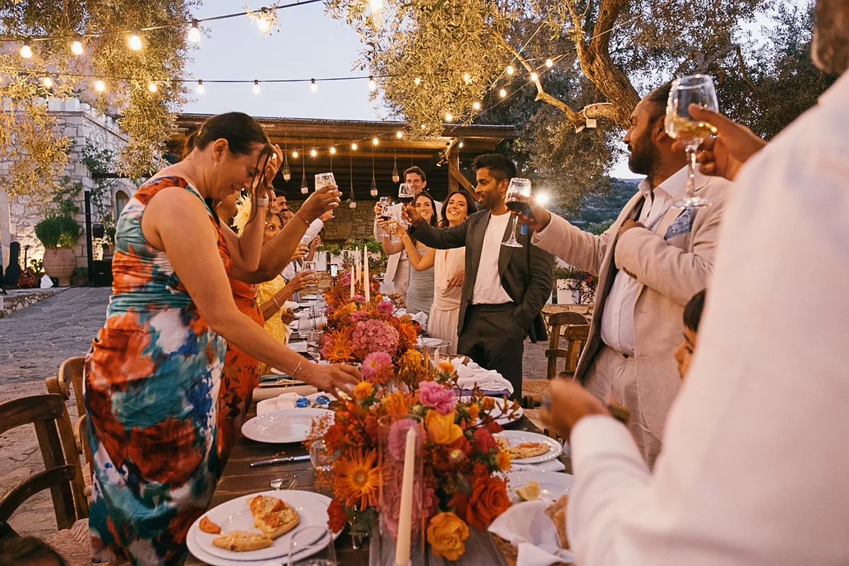 The highlight of the celebration was their ceremony at Agreco Farms, a stunning estate surrounded by olive trees, vineyards, and the scent of wild herbs. As the sun dipped below the Cretan hills, they exchanged vows that wove together Western and Hindu elements — a union of two worlds, grounded in love and respect. The setting felt timeless, the kind of place where every detail carries meaning.