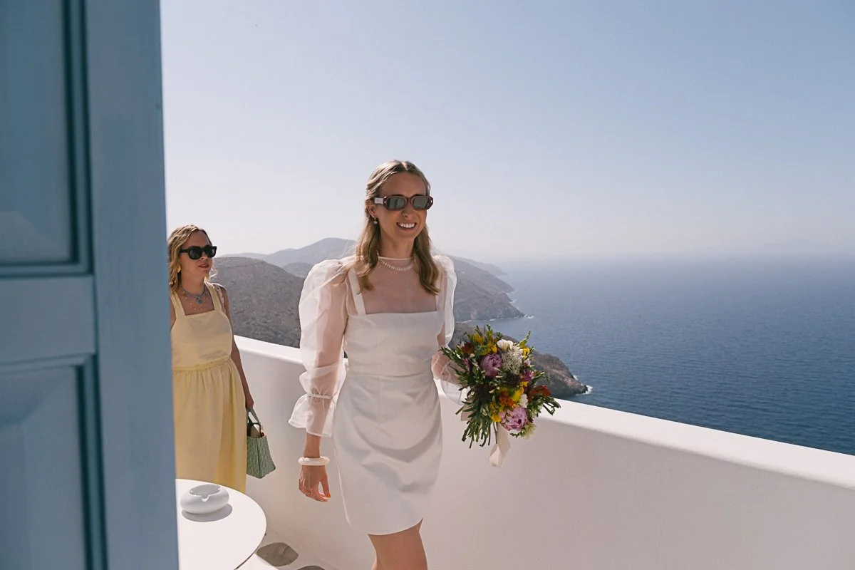 Amy and Nicolas’ vision was simple: to let the day unfold naturally. Every moment—walking through the cobblestone alleys of Chora, exchanging vows overlooking the sea, celebrating with friends and family—was captured just as it happened. No stiff portraits, no staged smiles. Instead, the photographs reflect the joy, the quiet glances, and the heartfelt connections of a wedding lived fully in the moment.